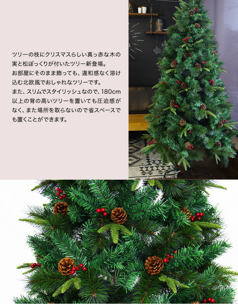 コーンベリー クリスマスツリー ・ツリーの枝にクリスマスらしい真っ赤な木の実と松ぼっくりが付いており、 お部屋にそのまま飾っても、違和感なく溶け込む北欧風でおしゃれなツリーです。