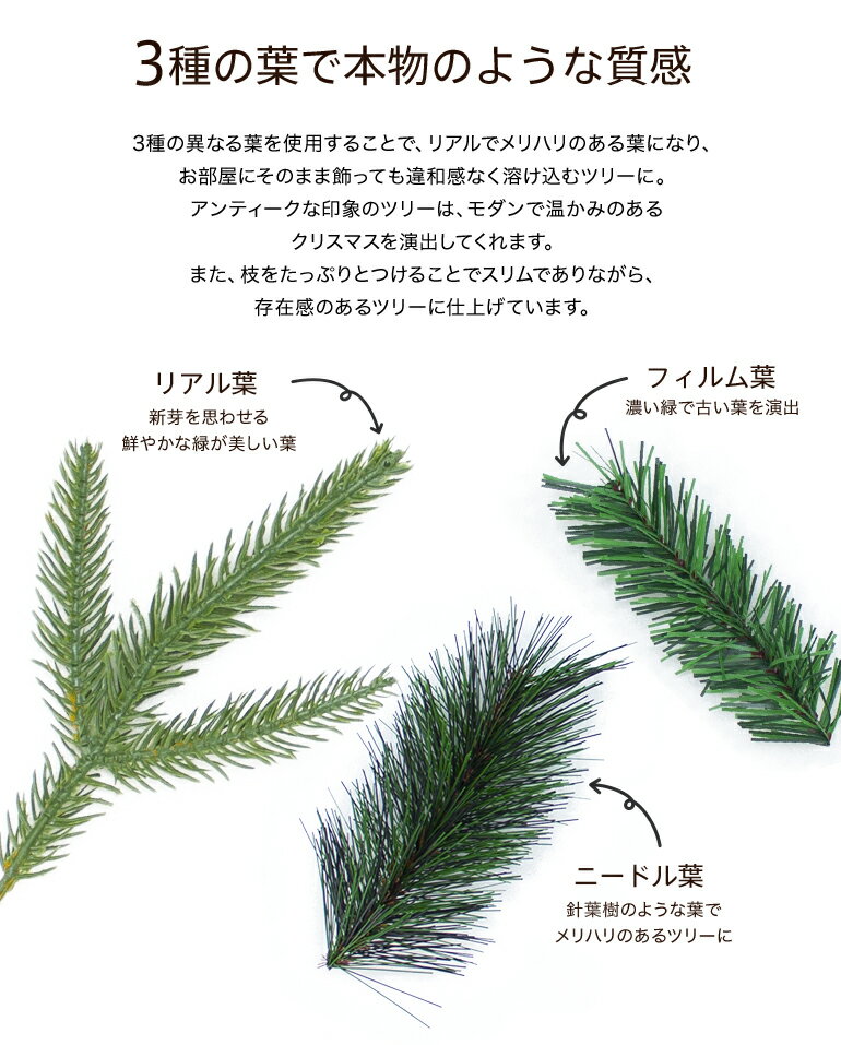 ・スリムでスタイリッシュなので、180cm以上の背の高いツリーを置いても 圧迫感がなく、また場所を取らないので省スペースでも置くことができます。