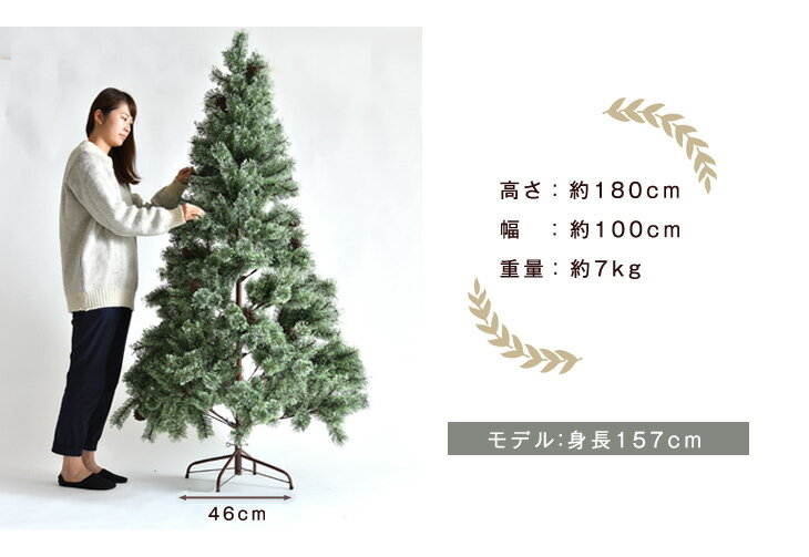 ※動画は120cmのツリーを使用しています サイズ違いはコチラです 120cm 150cm 仕様 サイズ幅110×高さ180cm重量:7kg【スタッフあめちゃんのおすすめポイント!】 ・ドイツトウヒをイメージしたおしゃれなクリスマスツリー ・本物の松ぼっくり付き ・落ち着いた雰囲気のヌードツリー ・お好みのオーナメントで飾り付けても◎ ・広いリビングにおすすめの高さ180cm素材PVC(塩化ビニル樹脂)、スチール、プラスチック 梱包サイズ35×40×100cm生産国中国 送料【送料無料(北海道・沖縄県・離島は送料別途)】 ※北海道・沖縄県・離島の場合はお問い合わせください。