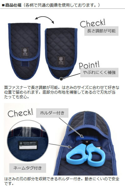 ■商品の特長1.好きな長さで留められる面ファスナー仕様収納するはさみのサイズに合わせて、好きな位置で留めることができます。