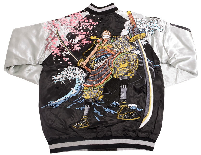 ONE PIECE Armor Monkey D. Luffy Embroidered Reversible Souvenir Jacket ワンピース 鎧 モンキー・D・ルフィ 刺繍 リバーシブル スーベニア ジャケット 大人気アニメONE PIECEと スカジャン製作を生業とし刺繍に定評のあるスイッチプランニングとの コラボレーションが実現!! 鎧を着たルフィの勇ましい姿をスカジャンに刺繍をしました。