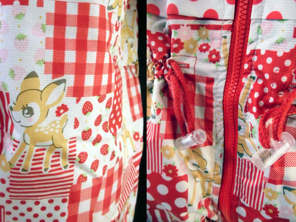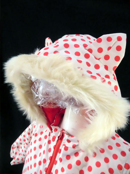 ◇ 商品情報 女児 雪遊びやスキーに大活躍 防寒着つなぎです かわいいバンビ柄のコンビスーツ フードはファー付きです。